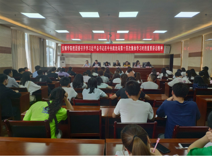 4月23日下午,安顺学院校团委组织学生干部代表学习习近平总书记在中央政治局第十四次集体学习时的重要讲话精神。安顺学院校团委副书记胡蕾、校团委全体老师及学生干部代表参加会议。