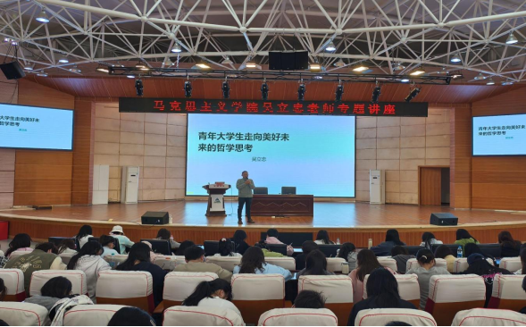 为了鼓励广大青年勇于实践和担当,实现思想引领和培养时代新人,共青团安顺学院委员会于2025年4月23日10:00邀请马克思主义学院博士吴立忠老师在学术报告厅为团校和青马班全体同学进行了《青年大学生走向美好未来的哲学思考》专题讲座。