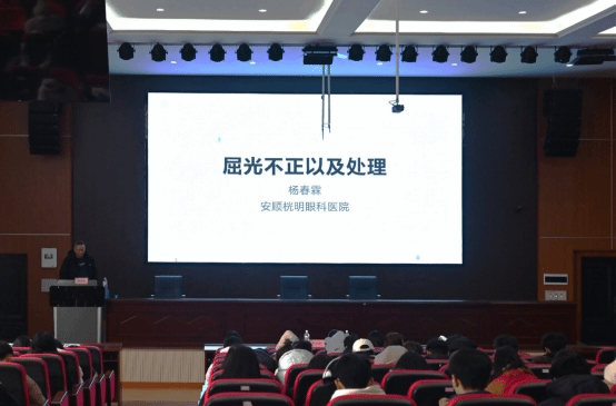 讲座伊始,杨院长凭借精心制作的图文并茂的课件,围绕屈光不正这一关键话题,以深入浅出、通俗易懂的语言,为同学们详细阐释了屈光不正的精准定义。他深入剖析了屈光不正包含的三种类型以及对应的处理策略,使同学们对这一问题有了更为全面深入的了解。随后,杨院长详细介绍了屈光手术的前期准备工作和具体手术操作方法,让同学们对屈光手术有了更为直观的认识。讲座期间,同学们认真听讲,积极互动,现场气氛热烈。为了巩固讲座效果,杨院长还开启了科学用眼问答环节。同学们热情高涨,踊跃举手答题。答对的同学得到了杨院长的肯定与表扬,大家纷纷表示收获颇丰,对屈光不正知识的理解和记忆得到了进一步巩固。