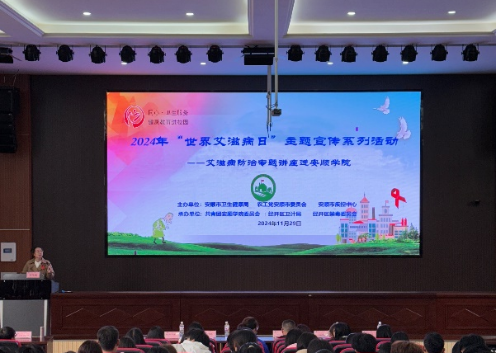 2024年11月29日,安顺学院博分别开展“健康教育进校园—艾滋病结核病系列讲座走进安顺学院”以及“2024年‘世界艾滋病日’宣传系列活动—健康教育专题讲座走进安顺学院”知识讲座。本次活动由安顺学院联合市经济开发区公安分局、市文体广电旅游局、市工业和信息化局、市司法局、市民宗委、市疾控中心、经开区卫计局、市卫生健康局等8家单位共同举办,吸引了来自安顺学院各二级学院的230名学生积极参与。讲座由安顺学院团委书记王旭主持。