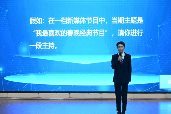 经过严格筛选,12位优秀选手从众多竞争者中脱颖而出,挺进总决赛。比赛设置了自我介绍、即兴主持和评委问答三大环节,全面考验选手的语言魅力、思维敏锐度及临场反应能力。选手们各显神通,以新颖独特的自我介绍令人印象深刻,随即在即兴评述和模拟主持中,凭借丰富生动的语言表达和灵活机智的表现,展现了卓越的主持潜力。