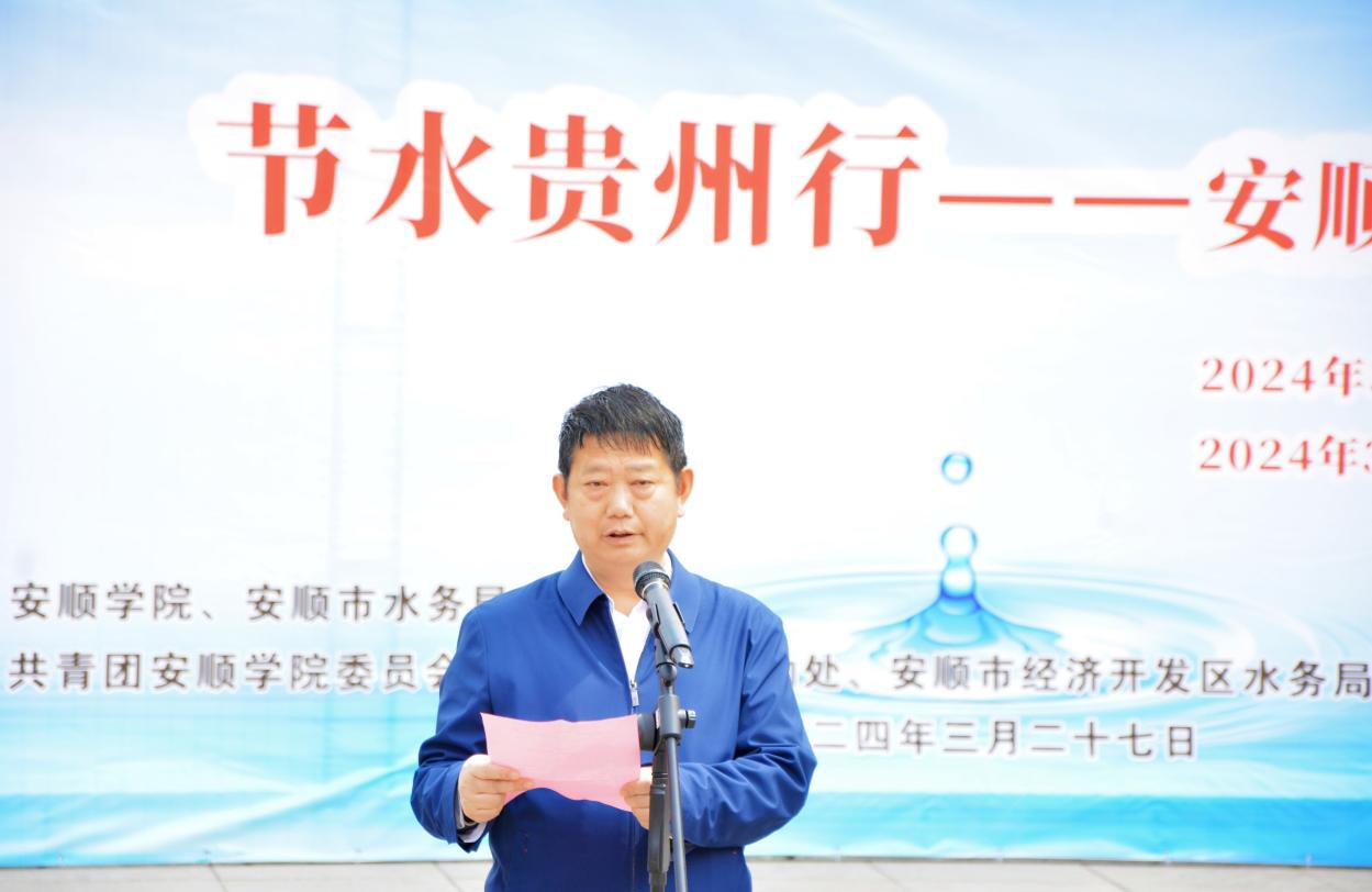 2024年3月27日,由安顺学院、安顺市水务局主办,共青团安顺学院委员会、安顺学院后勤处、安顺市经济开发区水务局、贵州杰源水务管理技术科技管理公司承办的2024“节水贵州行——安顺站”主题宣传活动开幕式在安顺学院举行。安顺学院党委副书记陶文彩、贵州杰源水务管理技术科技公司总经理曾立新以及来自学校各职能部门负责人、教师代表、学生志愿者代表参加本次开幕式活动。