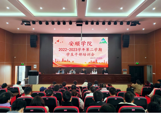 2023年2月28日中午,在博学楼A12教室,安顺学院校团委组织召开2022-2023学年第二学期学生干部培训会。安顺学院校团委书记王旭,校团委副书记刘欢欢,团委社会实践部部长李魁印,沈敏,辜良策,安顺学院校、院各学生组织代表参加会议。会议由王旭主持。