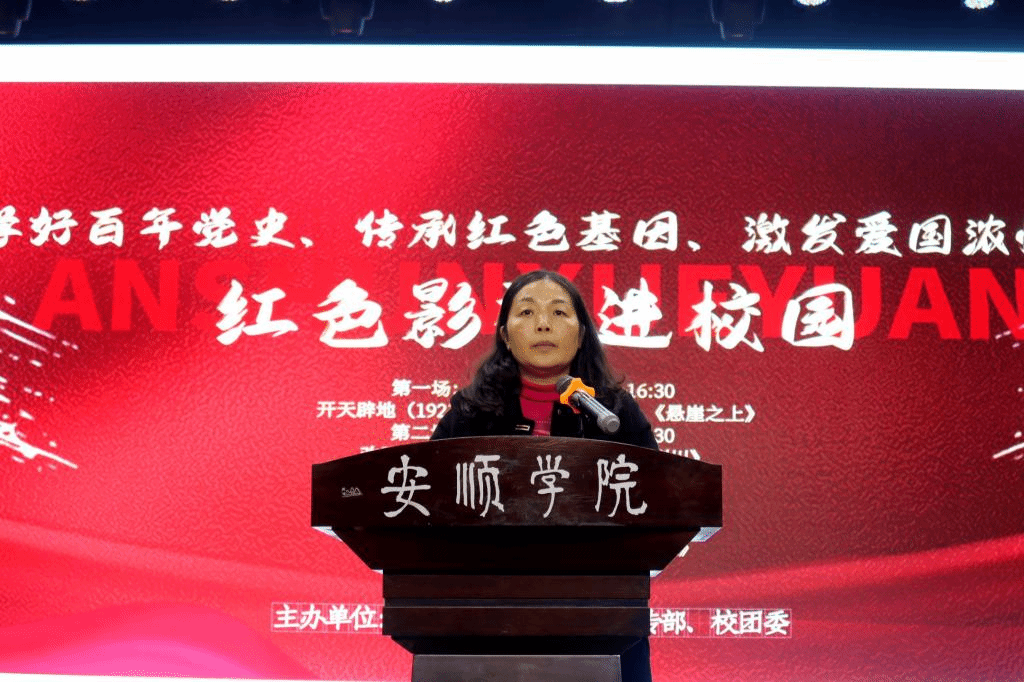 为扎实推进党史学习教育,深入贯彻习近平总书记关于“把红色资源利用好、把红色传统发扬好、把红色基因传承好”的重要指示,在纪念“一二九”运动86周年之际,2021年12月9日至12日,安顺学院举行“学好百年党史、传承红色基因、激发爱国浓情”红色影视进校园活动。安顺学院党委委员、副校长殷红敏出席活动并致辞。