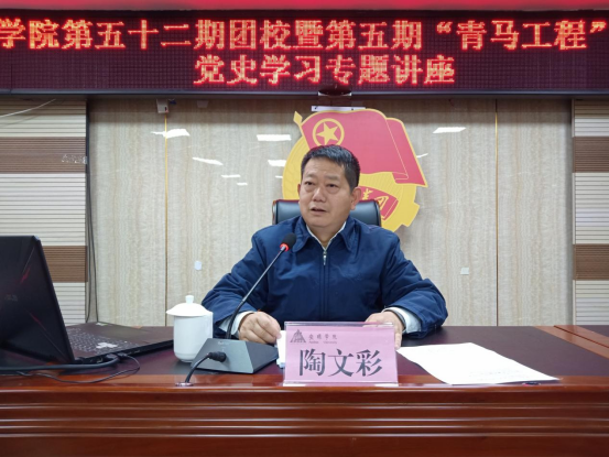 2021年11月12日,安顺学院党委副书记陶文彩为安顺学院第五十二期团校暨第五期“青马工程”班作《让民族之花在祖国大地处处盛开——弄染结盟的启示》党史学习专题讲座,校团委全体人员,安顺学院第五十二期团校和第五期“青马工程”培训班学员代表听讲。