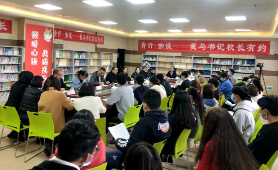 为扎实推进党史学习教育,将“学史明理、学史增信、学史崇德、学史力行”落实到实处,全心全意为人民群众办实事、为学生解难题。2021年11月8日下午,安顺学院举行“青听·咖谈—我与书记校长有约”活动,安顺学院党委书记罗荣彬,安顺学院党委委员、副院长殷红敏,党政办、组织部、宣传部、团委、学生工作处、后勤处、保卫处等部门负责人,安顺学院各校级学生组织、各二级学院学生干部代表等50余人参加活动。本次活动由安顺学院团委书记胡蕾主持。