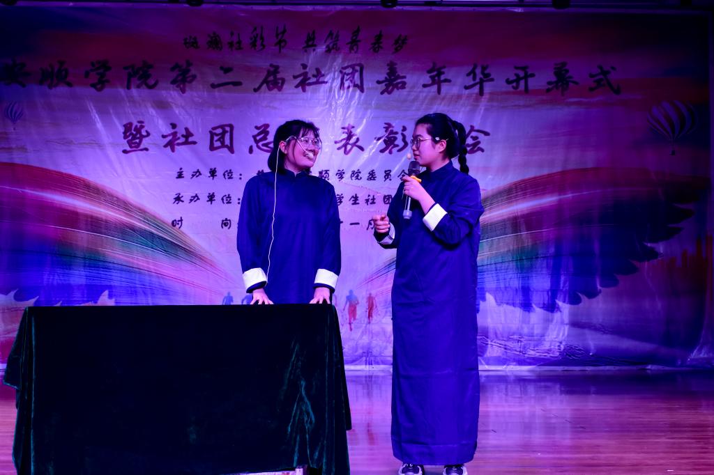 11月11日晚7点,由校团委主办、大学生社团联合会承办的安顺学院第二届社团嘉年华开幕式暨社团活动总结表彰大会在大礼堂举行。安顺学院党委委员、副校长令狐荣涛,安顺学院关工委常务副主任、未名文学社指导教师杨通邦,马克思主义学院、政法学院党委书记、知行国学社指导教师黎进深,经济与管理学院院长、读书协会指导教师赵伶俐,校团委各老师、各社团指导老师、各协会学生代表参加活动。