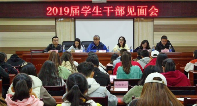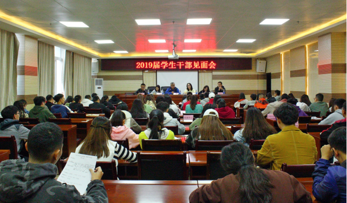 10月14日下午,安顺学院团委在特教七楼会议室召开了2019届学生干部见面会。安顺学院党委委员、副校长令狐荣涛、校团委副书记胡蕾及校团委全体人员、各校级组织学生代表、各协会主要负责人参加会议。会议由胡蕾副书记主持。