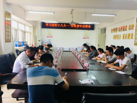 2018年7月6号下午3:00,安顺学院“学习团的十八大——安院青年话使命”为主题的学习贯彻团的十八大会议精神宣讲会在教务处四楼会议室举行。安顺学院团委副书记胡蕾,组织部部长谌兰樱,办公室主任张丽以及校团委老师吴胜艳、周瑞祥、王振伟、邓韧,各校级学生组织代表参加会议。会议由校团委老师周瑞祥主持。