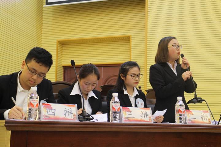 经过选拔赛角逐,旅游学院、政法学院进入决赛。正方旅游学院以“低碳发展,制度建设比科技创新更为重要”为辩题对战以“低碳发展,科技创新比制度建设更为重要”为辩题的反方政法学院。经过激烈角逐,旅游学院获得冠军,政法学院获亚军,特教学院、体育学院获季军。辩论赛共决出单场最佳辩手13个、大赛最佳辩手1个、组织奖10个。