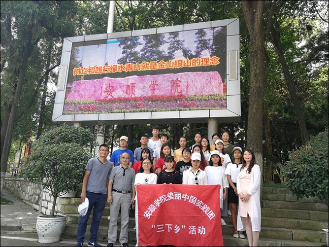 2018年7月17日,安顺学院美丽中国实践团暑期“三下乡”社会实践活动出征仪式顺利举行。资环学院院长冯开禹,资环学院党总支副书记叶玉莲,带队教师张炜亮、班荣舶等出席仪式,杨青青、朱巡等十八位参加了出征仪式。冯开禹院长向所有团队成员介绍了以往本团队所取得的优异成绩,勉励大家要结合资环学院专业特色增强信心齐心协力完成本次“三下乡”活动,叶玉莲副书记嘱托队员要时刻注意安全并严格遵守纪律。此次“三下乡”活动将在活动基地—安顺市紫云县格凸河镇主要围绕乡镇生态环境保护质量调查、生态环境保护政策法律法规宣传、农村垃圾处理等内容开展暑期大学生社会实践活动。