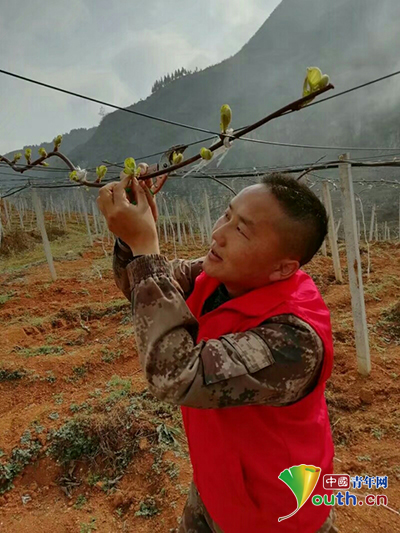 安文忠在果园查看猕猴桃发芽状况。本人供图