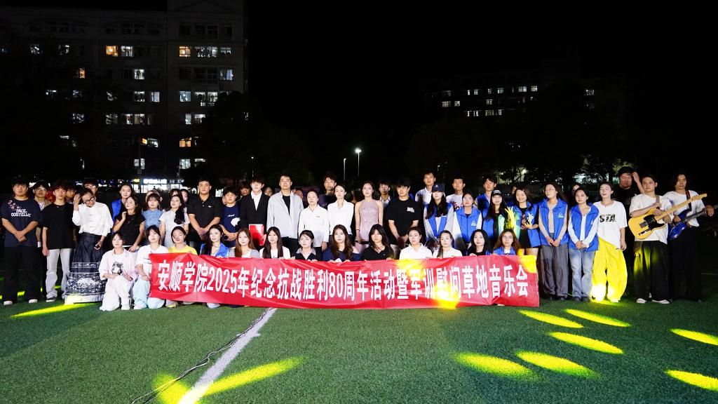 为丰富军训新生文化生活,传递青春正能量,2025年9月11日晚7点,安顺学院在操场举办军训慰问演出草地音乐节。本次活动以“青春献祖国,歌舞颂华章”为主题,为全体军训新生及师生呈现了一场视听盛宴。